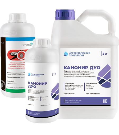 - Канонір Дуо ефективний для знищення шкідників, що ховають і живлять на нижньому боці листя;