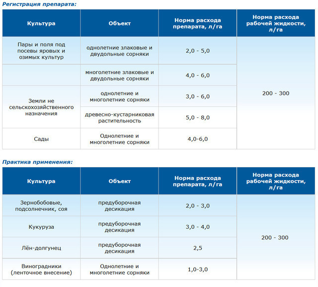 Швидкість дії: Перші ознаки гербіцидної дії з'являються на 3-4 дні як пожовтіння й побуріння рослин. Повна загибель спостерігається на 7-14 день після оброблення.